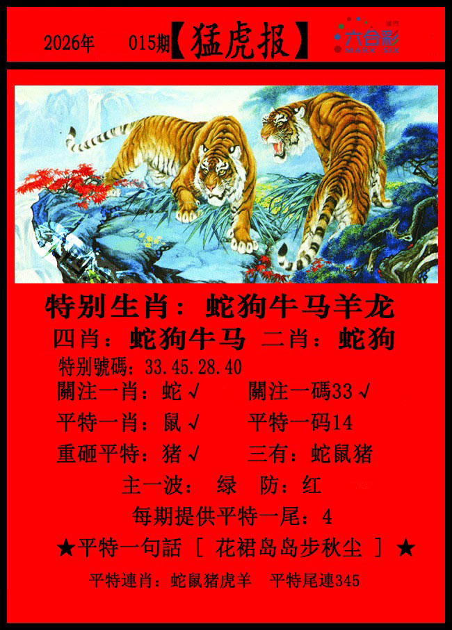 015期:◆ ①字解平特 《 虎 》开: ?00