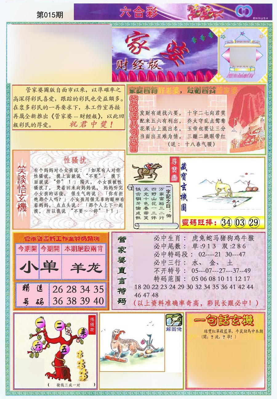 005期:◆ ①字解平特 《 猪 》开: 虎16错